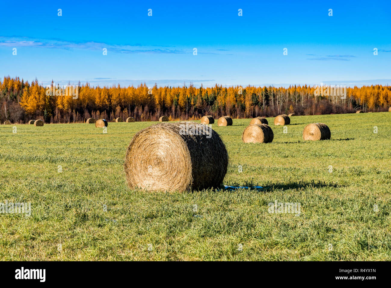 Field With Hay Bales Alberta Canada Stock Photo Alamy